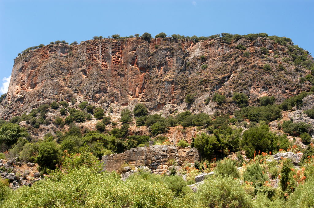 Pinara is known for it unique tombs cut into the rock as seen here. |